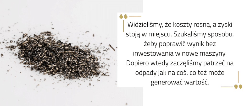 „Widzieliśmy, że koszty rosną, a zyski stoją w miejscu. Szukaliśmy sposobu, żeby poprawić wynik bez inwestowania w nowe maszyny. Dopiero wtedy zaczęliśmy patrzeć na odpady jak na coś, co też może generować wartość.”— podkreślił Kierownik produkcji.