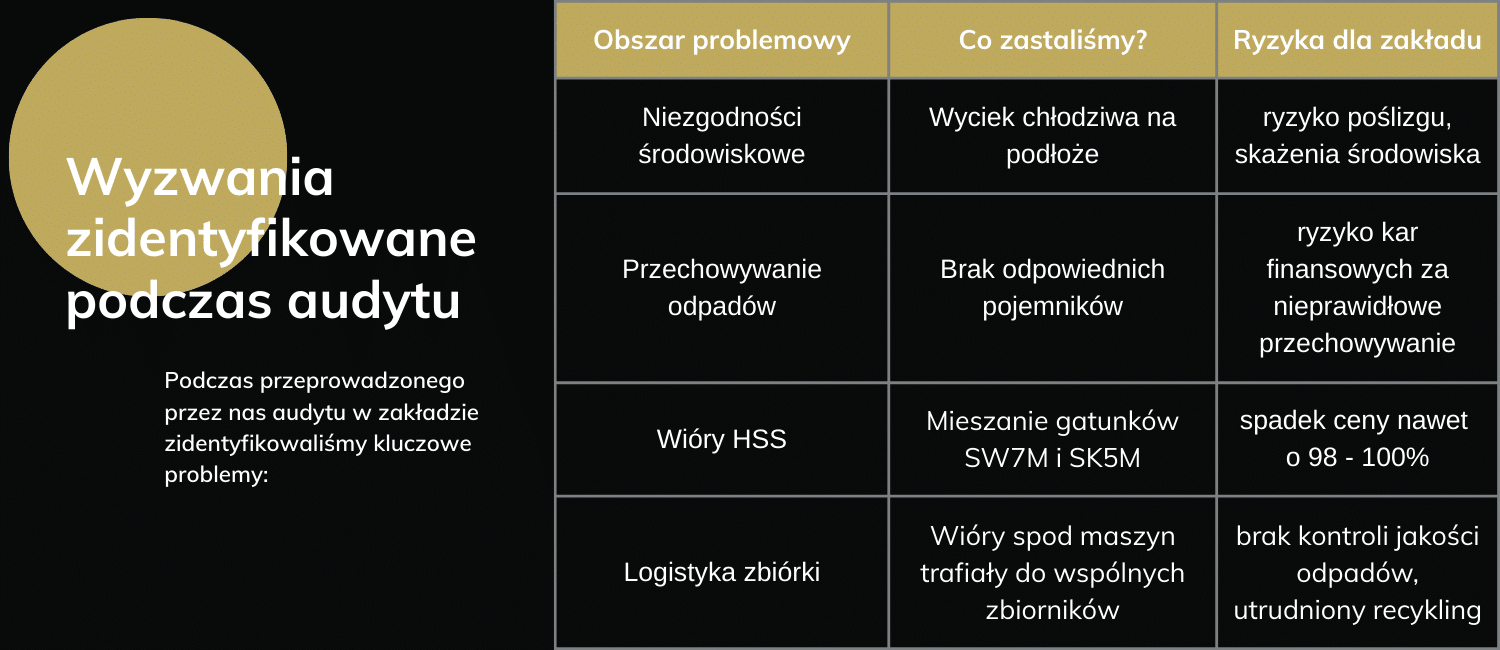 Utrata wartości odpadów i przychodów Mieszanie wiórów HSS i węglika spiekanego obniżało ich wartość i generowało straty finansowe.