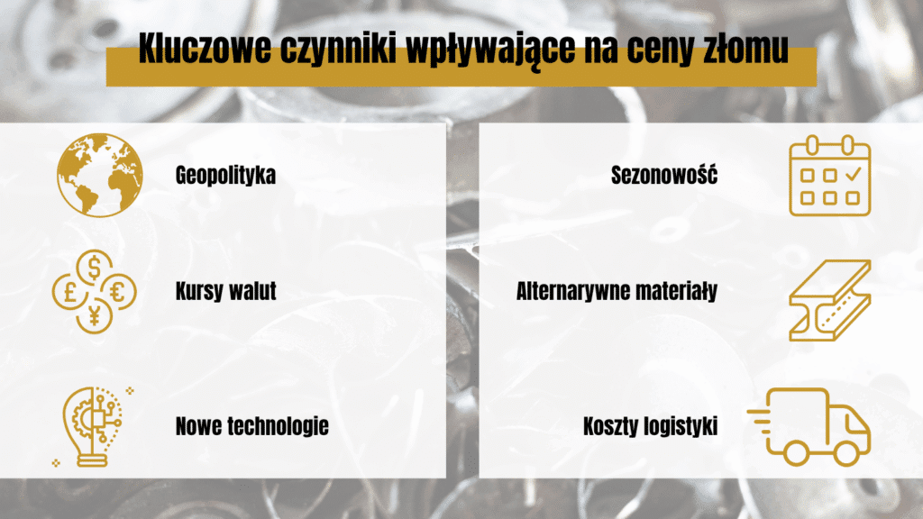 Na kształtowanie cen złomu metalowego w 2026 roku wpłynie wiele wzajemnie powiązanych czynników. Ich zrozumienie pozwoli podejmować trafniejsze decyzje biznesowe i lepiej reagować na zmieniającą się sytuację rynkową. Przede wszystkim na rynek wpływają globalne zmiany gospodarcze, takie jak tempo wzrostu przemysłu, inwestycje infrastrukturalne oraz polityka handlowa poszczególnych krajów. Nie bez znaczenia pozostają również zmiany w podaży surowców – ograniczenia produkcji lub problemy logistyczne mogą powodować gwałtowne wahania cen. Dodatkowo, rosnące wymagania ekologiczne i regulacje dotyczące recyklingu wpływają na dostępność i jakość złomu, co także oddziałuje niejako na jego cenę.